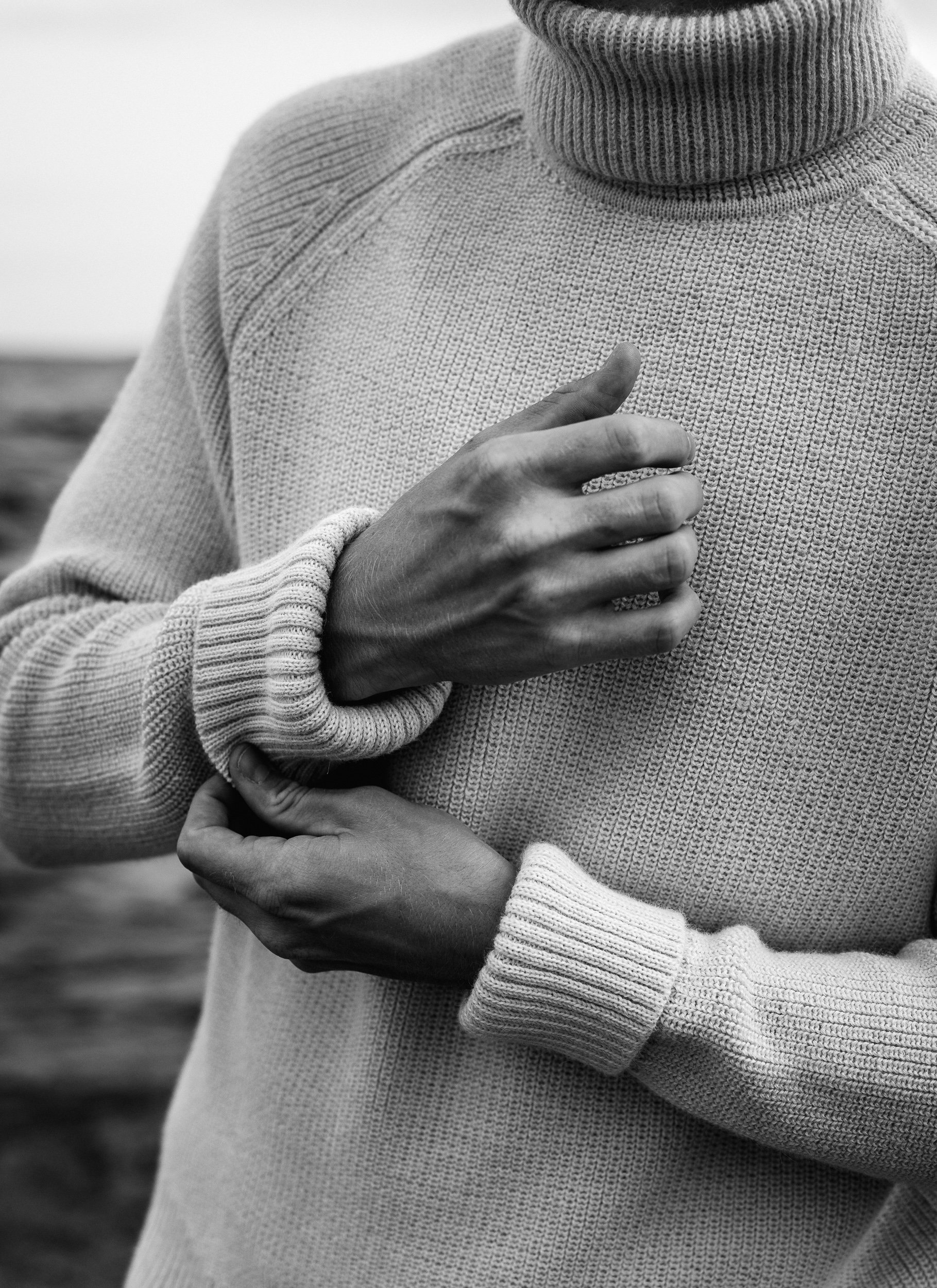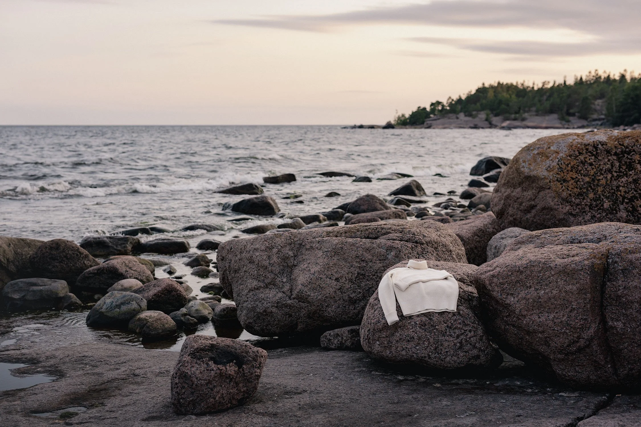 Brand photography for Alpa, a Finnish alpaca wool knitwear brand. Shot on location on the Finnish coastline. Used across digital channels, product pages, and in-store prints across Finland.